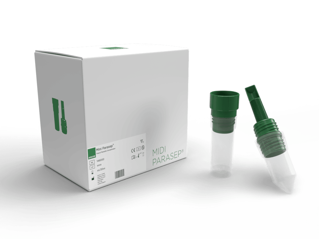 Die Mini & Midi Parasep® Stuhlröhrchen von Apacor sind ein Anreicherungssystem für Stuhlparasiten in einem einzigen Röhrchen mit eingebautem patentierten Spezialfilter, passend für alle 15 ml bzw. 50 ml Zentrifugenbehälter.