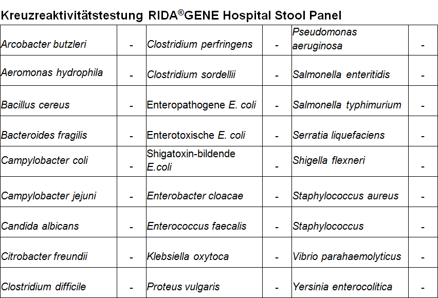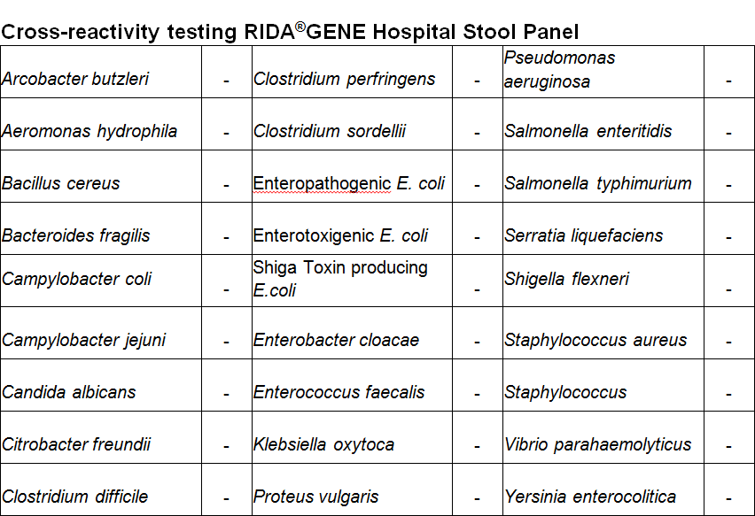 Für die in-vitro Diagnostik. RIDA®GENE Hospital Stool Panel ist eine multiplex real time RT-PCR zum direkten qualitativen Nachweis und zur Differenzierung von