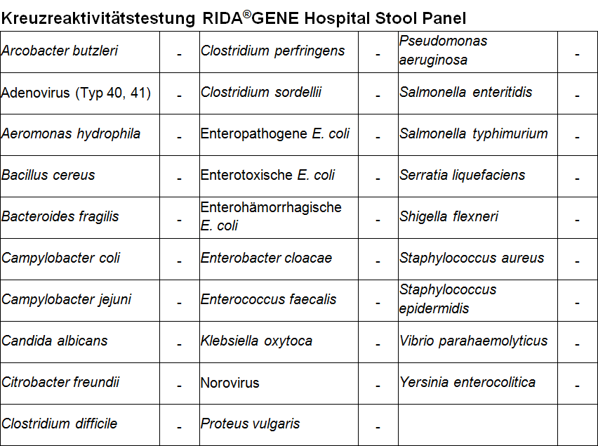Die RIDA®GENE Hospital Stool Panel multiplex real-time RT-PCR soll die Diagnose einer im Krankenhaus erworbenen Gastroenteritis unterstützen.