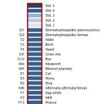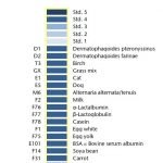 This test is based on the principles of the immunoblot method. Various allergens are attached to the surface of nitrocellulose membranes in separate lines depending on the configuration of the panel. Allergen-specific IgE antibodies react with the appropriate allergens, if they are present in the patients’ samples. In a second step biotin-conjugated anti-human IgE antibodies bind to the attached antibodies. During a third incubation step the biotin binds to a streptavidin peroxidase conjugate. In a final incubation step the peroxidase turns the colorless substrate tetramethylbenzidine (TMB) into a bluish purple final product. After each individual incubation a washing step follows to remove unbound material. The intensity of the blue color is proportional to the amount of allergen-specific antibodies in the patient’s serum.