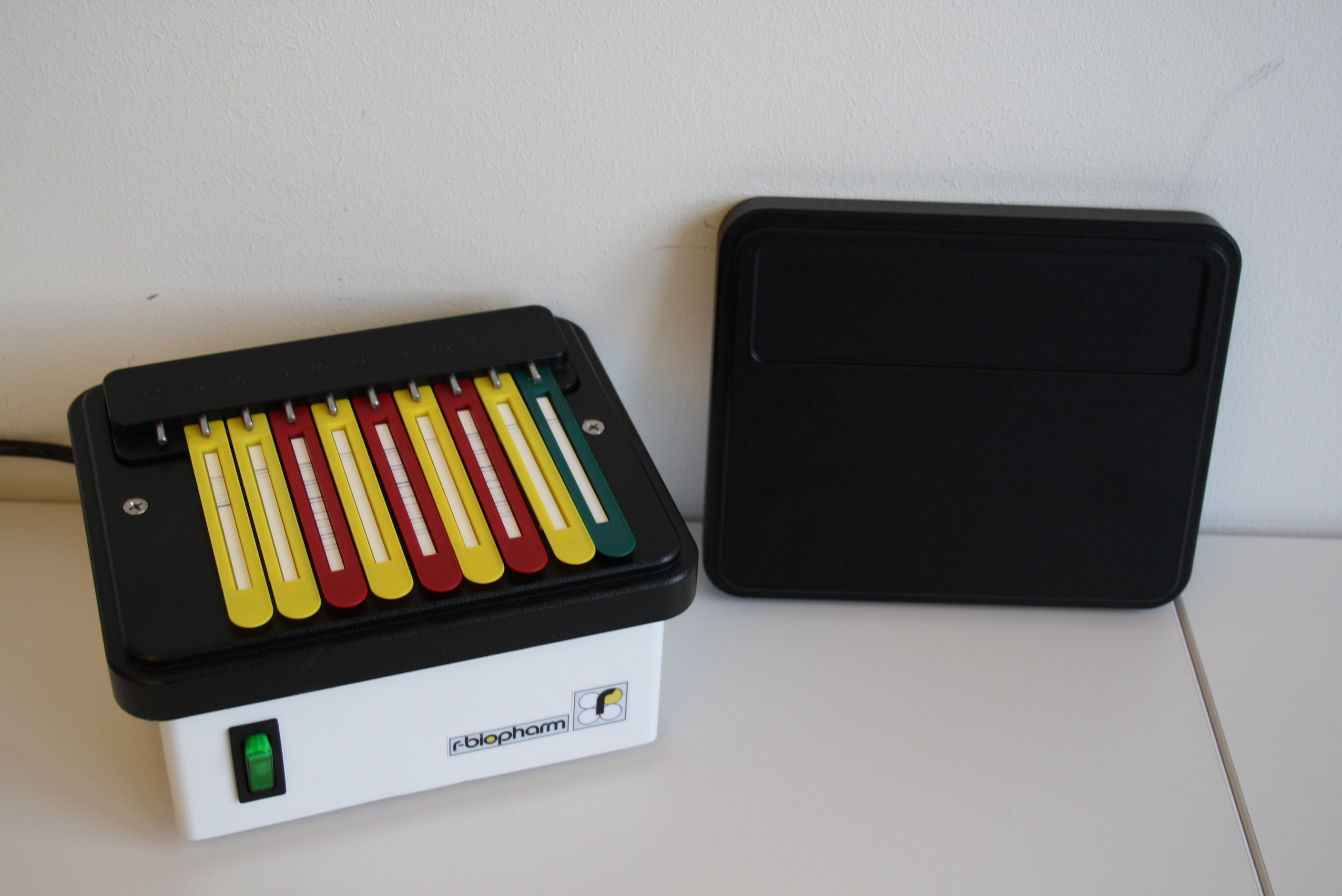The RIDA qLine® Orbital Shaker is for shaking qLine Allergy LineBlots. It is a shaking device with an orbital shaking movement. The shaking frequency is factory-provided fixed to 300 rpm.