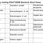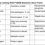 RIDA®GENE Bacterial Stool Panel multiplex real-time PCR is a new and attractive alternative method for testing stool samples and has proven to be highly sensitive and specific for the simultaneous detection of three of the most important diarrhea causing bacteria (Campylobacter spp., Salmonella spp. and Y. enterocolitica).