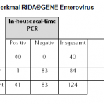 Enteroviruses belong to the family of Picornaviridae and according to the current classification enteroviruses are divided into 15 species (enterovirus A-L and rhinovirus A-C), whereby the species enterovirus E-L are not described as human pathogenic.The species enterovirus A includes the human enteroviruses A and the coxsackie viruses A, whereas the enteroviruses B include the human enteroviruses B, the coxsackie viruses B and also the echoviruses. Furthermore, the human enteroviruses C, the coxsackie viruses C and the polioviruses are part of the species enterovirus C. Enteroviruses mainly infect infants and small children and are transmitted via the fecal-oral route but also sometimes by droplet infection and contaminated water. Most enterovirus infections are asymptomatic or present with mild cold-like symptoms. Though, due to the multitude of enterovirus species the clinical presentation in severe symptomatic diseases is of broad variety. Severe enterovirus infections are poliomyelitis, hand-foot-and-mouth disease, meningitis and myocarditis.