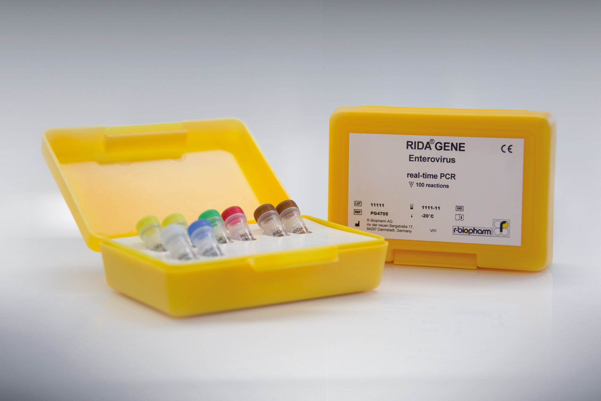 For in vitro diagnostic use. RIDA®GENE Enterovirus is a multiplex real-time RT-PCR for the direct qualitative detection of Enterovirus from human stool samples and cerebrospinal fluid (CSF).