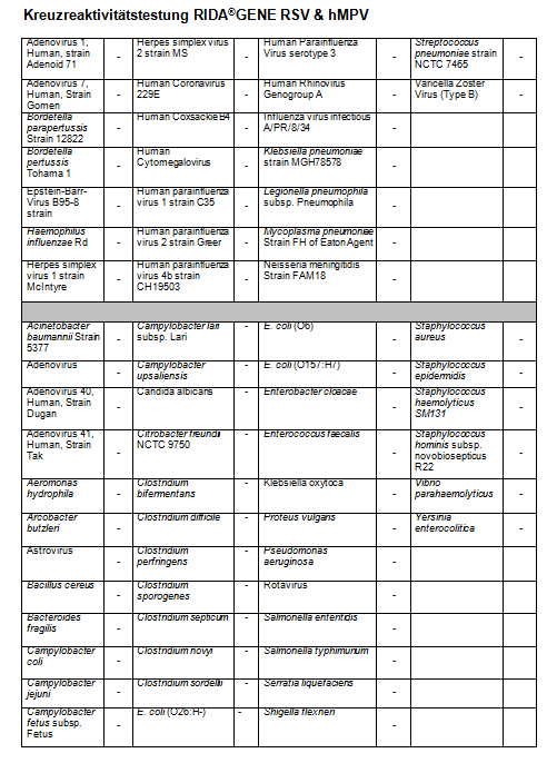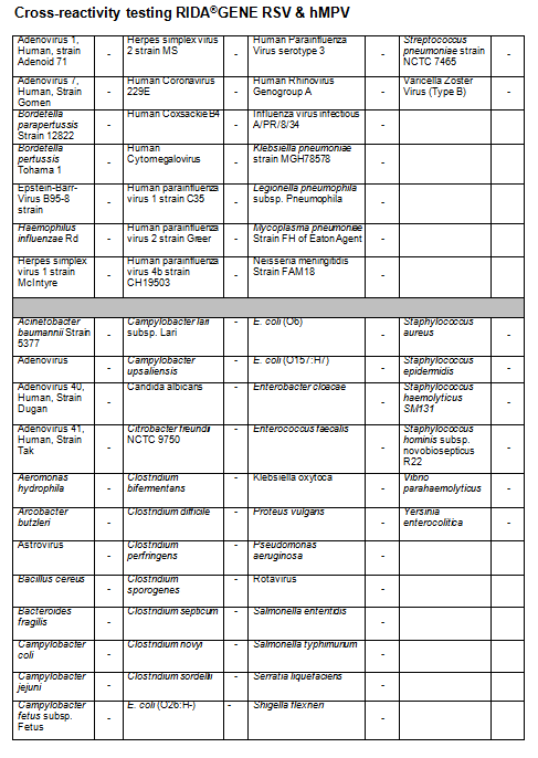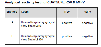 The RIDA®GENE RSV & hMPV test is intended to support the diagnosis of viral (RSV & hMPV) infections in patients with symptoms of respiratory infection in connection with other clinical and laboratory findings.