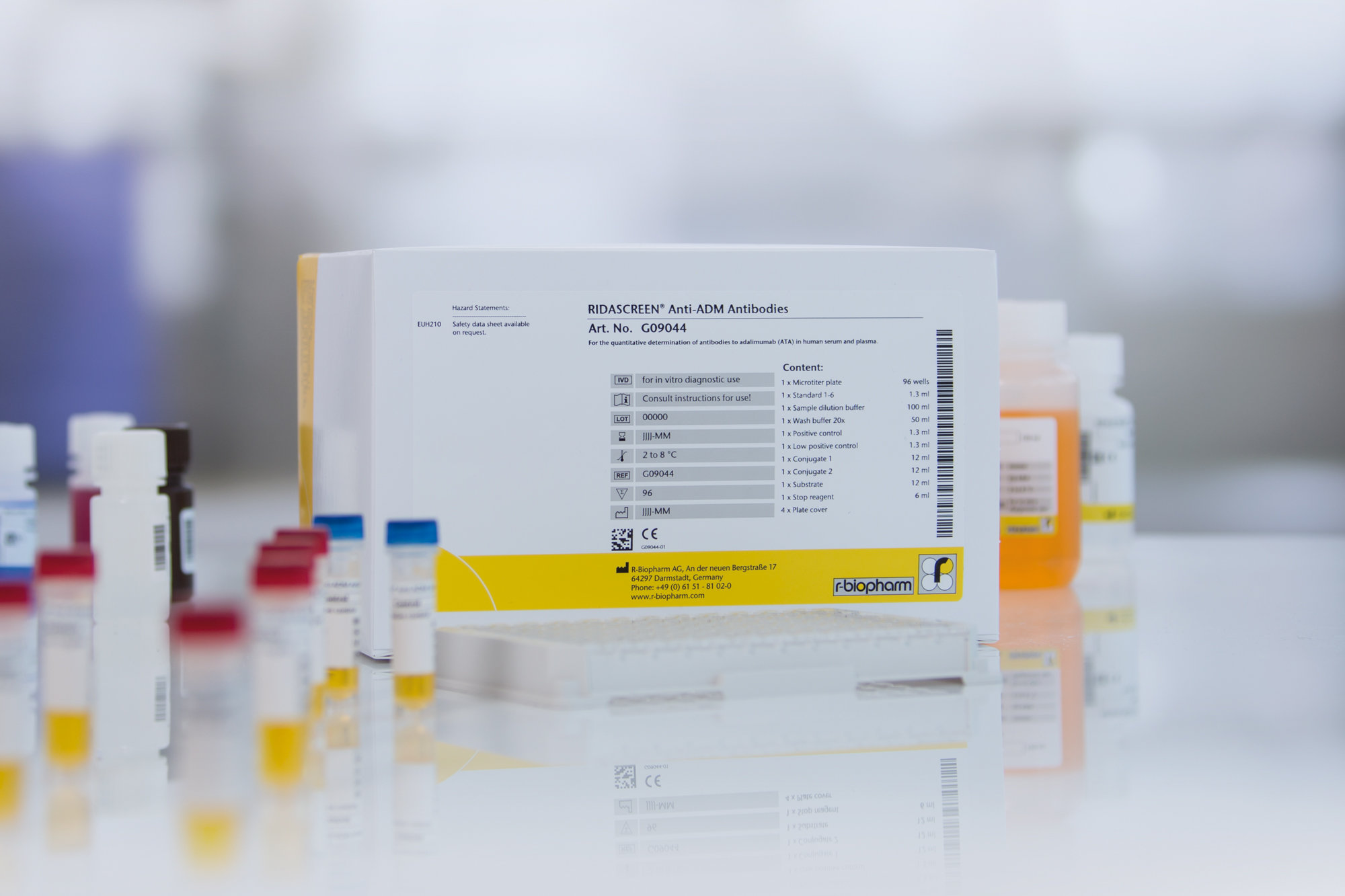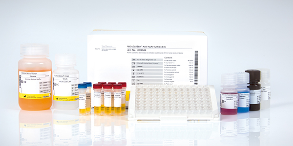 RIDASCREEN® Anti-ADM Antibodies is an enzyme linked immunoassay intended for the quantitative determination of antibodies to adalimumab (ATA) in human serum and plasma.